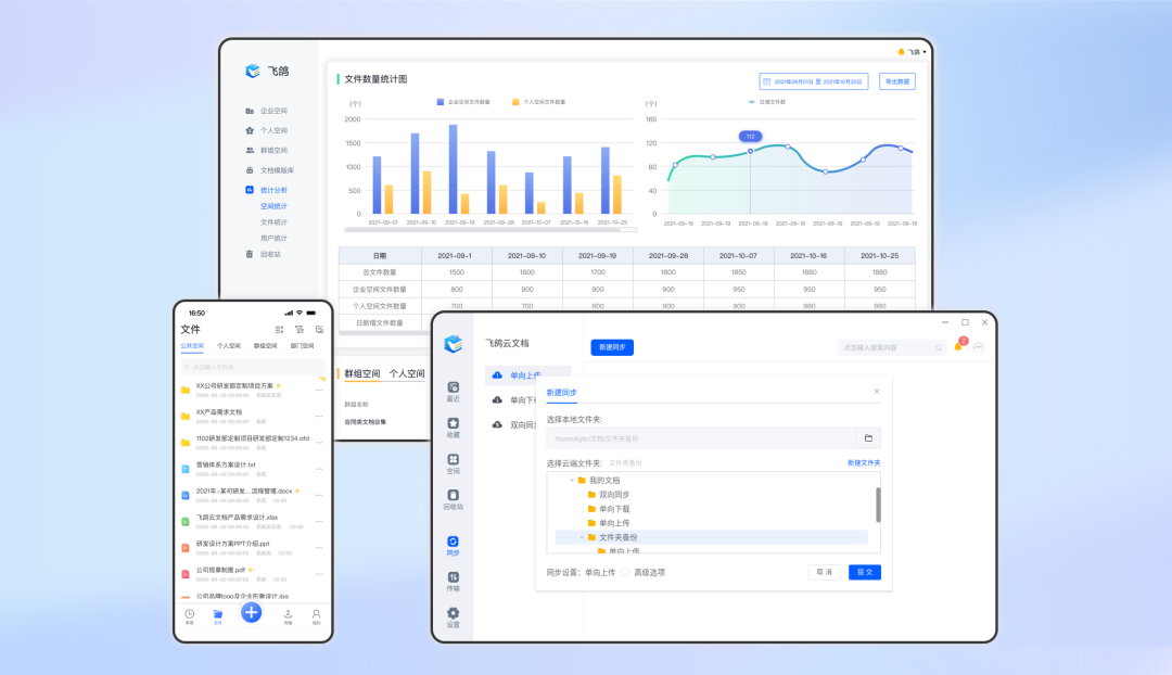 飞鸽是一款对日常办公中的各类文档、音视频文件等数据进行云端存储、分类管理、在线查阅、协同分享的文档安全管理软件,旨在为用户构建基于文档全生命周期的数字化、移动化、协同化为一体的数字资产管理平台。