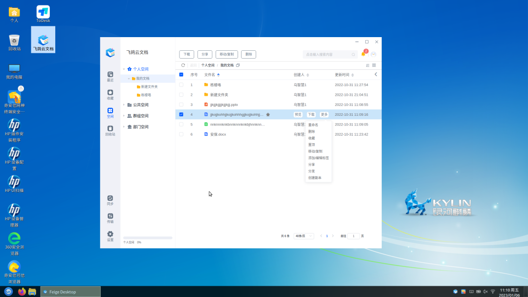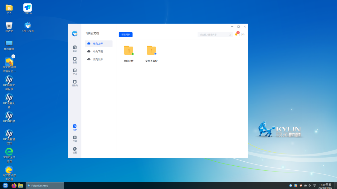 使用银河麒麟桌面操作系统V10/V10SP1的用户可在麒麟应用商店,搜索“飞鸽云文档”下载使用。