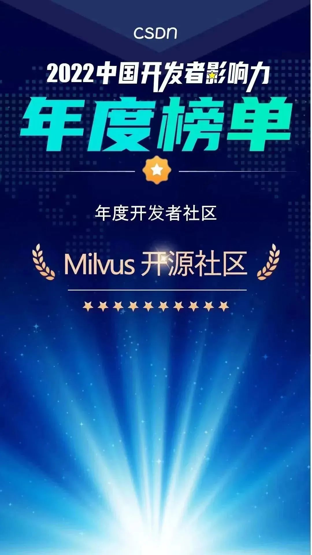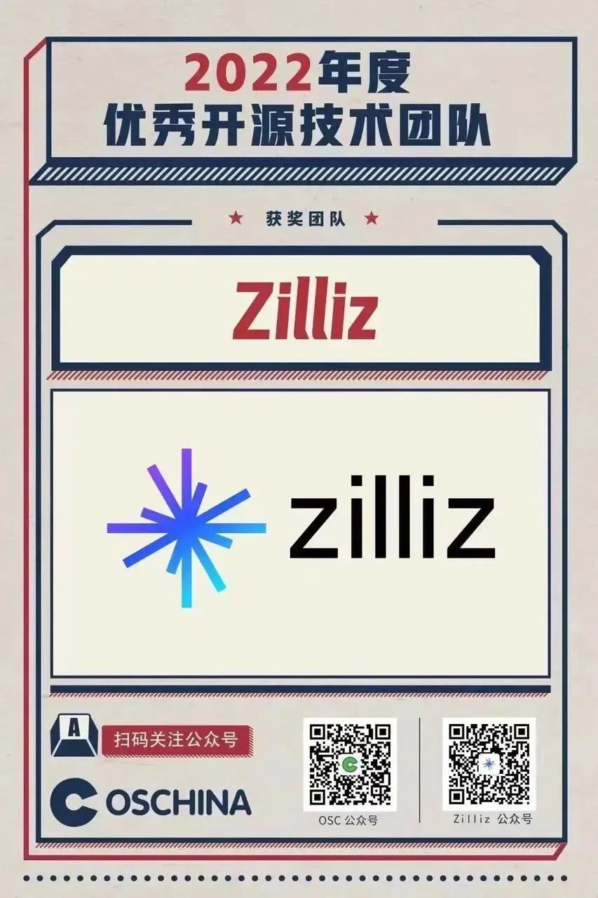 近日,CSDN “2022 中国开发者影响力年度榜单”、InfoQ “2022 中国技术力量年度榜单” 以及 OSC “2022 优秀开源技术团队” 评选结果陆续揭晓。Zilliz 凭借本年度在开源领域的卓越贡献及技术实力,先后斩获 CSDN “2022 中国开发者影响力年度榜单——年度开发者社区”、OSC “2022 优秀开源技术团队” 和 InfoQ “2022 年度最佳生态建设奖” 三项大奖。