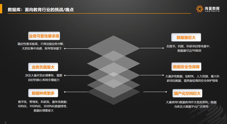 针对教育行业各种应用场景,海量数据库Vastbase以高性能、高并发、高可用、高安全、高兼容、多模态,很好解决了行业痛点,应用满足度高。