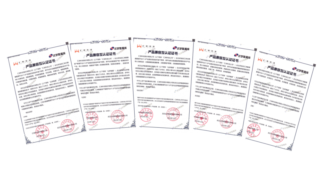 近日,汇纳科技(股票代码:300609.SZ)自主研发的主数据管理平台V1.0、数据资产管理平台V1.0、数据质量管理平台V1.0、数据标准管理平台V1.0、元数据管理平台V1.0等5个数据中台相关产品与达梦数据库管理系统V8完成产品兼容互认证。