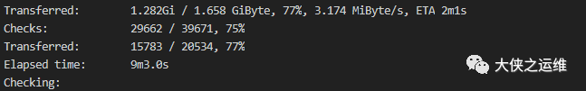 可以通过加 --progress 显示迁移的进度及校验的结果
