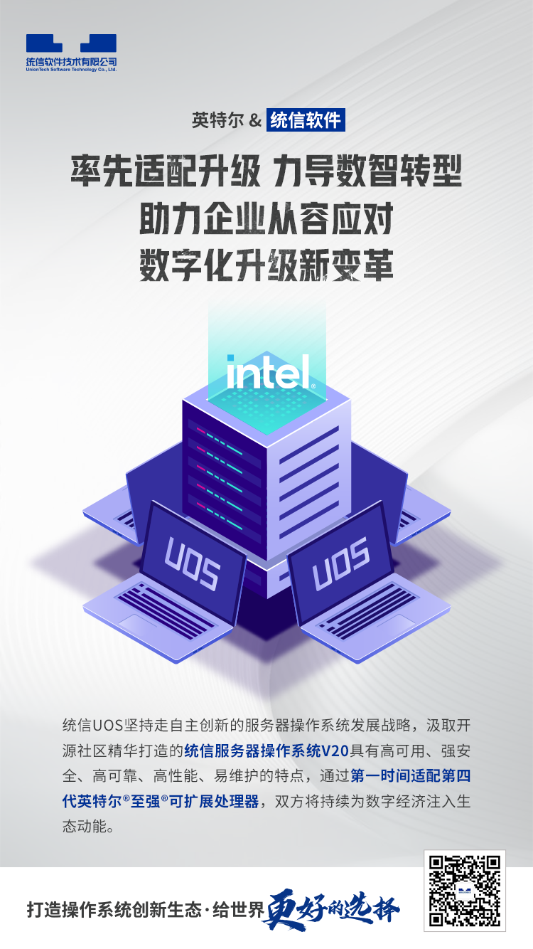 统信UOS坚持走自主创新的服务器操作系统发展战略,汲取开源社区精华打造的统信服务器操作系统V20具有高可用、强安全、高可靠、高性能、易维护的特点,随着全新一代英特尔至强可扩展处理器的发布,双方产品将在数字化建设中,共同发挥无可替代的作用。