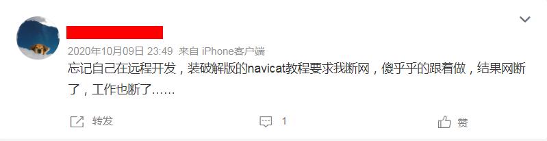 有网友吐槽:半天时间几个小时啥也没干,跟着不同视频各种试错如何安装破解版了,仍然是竹篮打水一场空。还有更悲催的网友:安装破解版时,忘记自己在远程开发,装破解版的Navicat教程要求断网,傻乎乎的跟着做,结果网断了,工作也断了。这些都是SQL初学者最真实的痛。