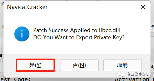 8、回到安装包,打开“激活工具”文件夹,有两种激活方式,第一种永久激活:打开“永久激活”文件夹,以管理员身份运行“NavicatCracker.exe”注册机文件,弹出注册机,点击“Patch”,弹出框点击“是”。