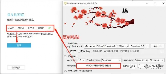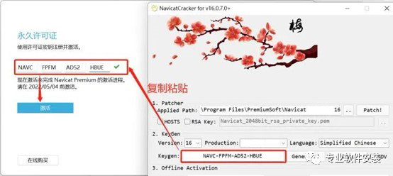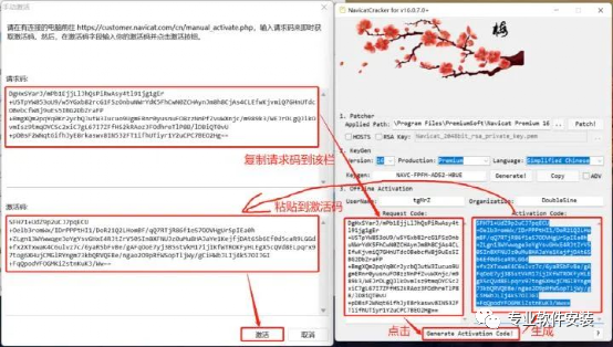 12、将弹出界面的请求码复制粘贴到注册机【Request Code】下面,随后点击“Generate Activation Code!”,再将生成的【Activation Code】复制粘贴到“激活码”中,随后点击“激活”,完成,详细步骤如图所示。