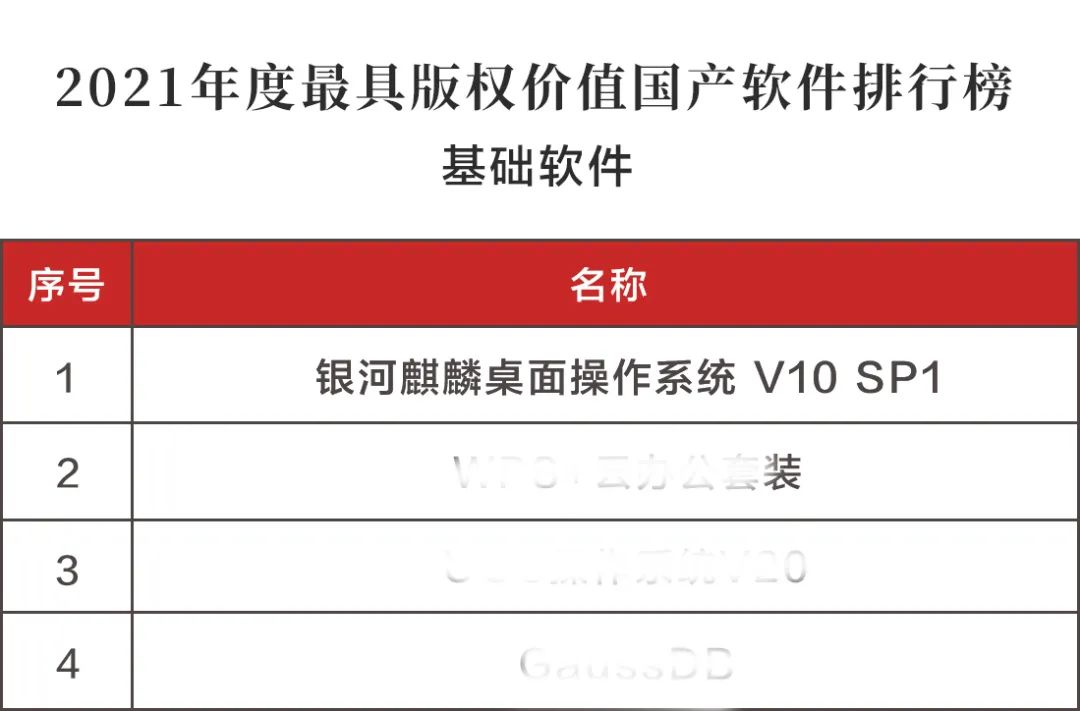 1月14日,中国版权协会公布“2021年度最具版权价值排行榜”。在 “国产软件-基础软件”榜单中,银河麒麟桌面操作系统V10 SP1荣膺榜首,光荣上榜!
