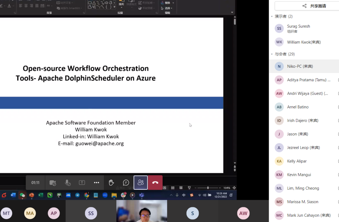 我主要在社区负责 Apache DolphinScheduler 全球运营工作,提升“小海豚”在全球的影响力及社区内部的建设。