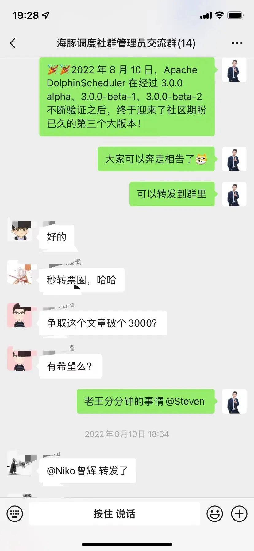 但是我心里很清楚,这是没办法从根本上解决问题,在这里向“社区自发当客服的用户”表示崇高的敬意,其中还包括海豚调度社区中国区第一任管理员们,他们分别是晏江、许志武、张琦琛、王昱翔、向梓豪、杨启煜、杨佳豪、高楚枫、高枫;