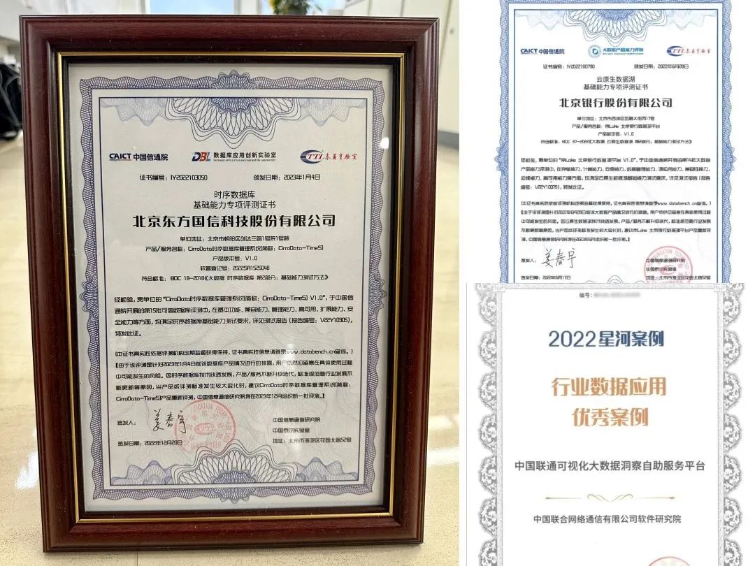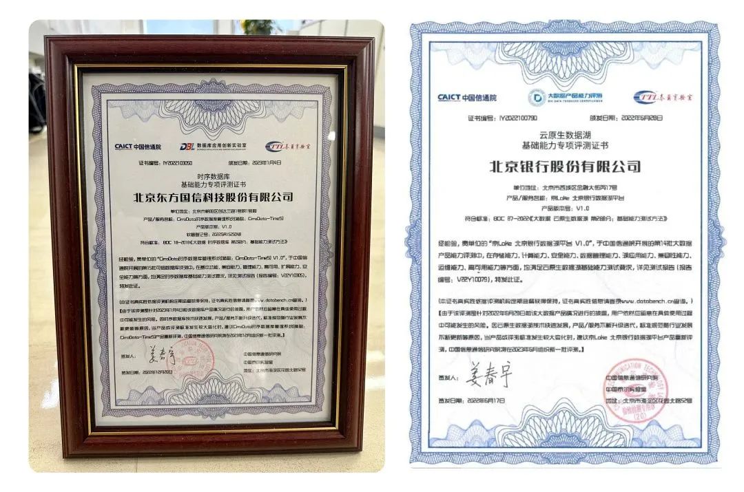 CirroData-TimeS时序数据库通过信通院基础能力专项评测;参与北京银行“京Lake 北京银行数据湖平台 V1.0”的开发,该平台通过信通院云原生数据湖基础能力专项评测。