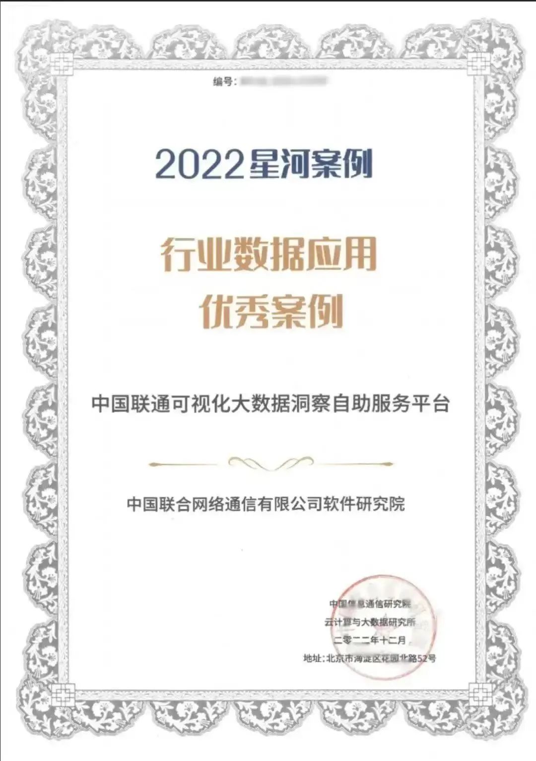 以CirroData-OLAP为底座的“中国联通可视化大数据洞察自助服务平台”、中国核电的“核电行业数据资产管理及应用”荣获信通院“星河”优秀案例。