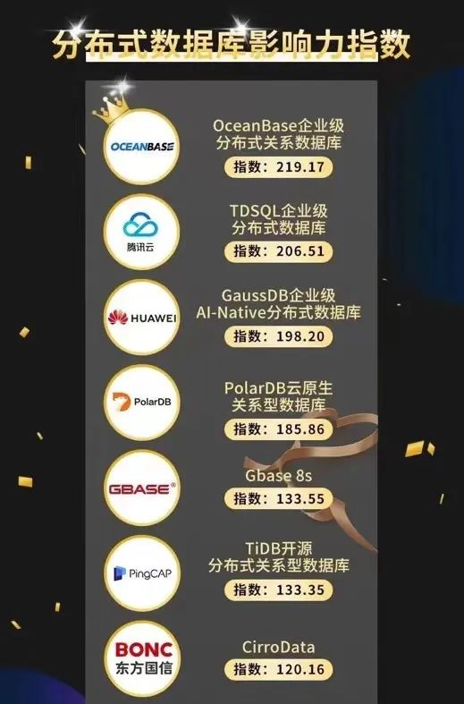 CirroData数据库在工信部国家工业信息安全发展研究中心下属“计世资讯”发布的“数据库产品影响力指数”排名中实力上榜,排名第七。