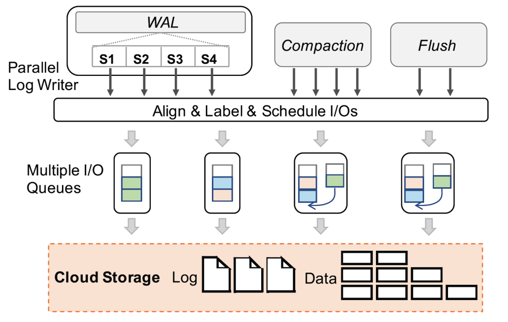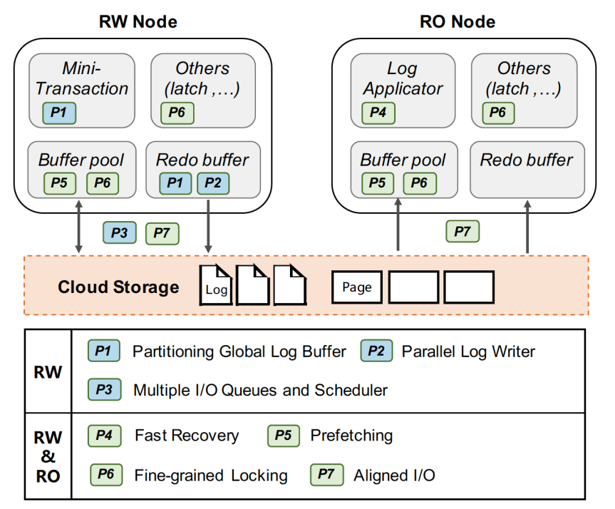 云存储中较长的 I/O 延迟放大了同步开销,主要针对 B-tree,实现无锁刷脏、无锁 SMO 等;