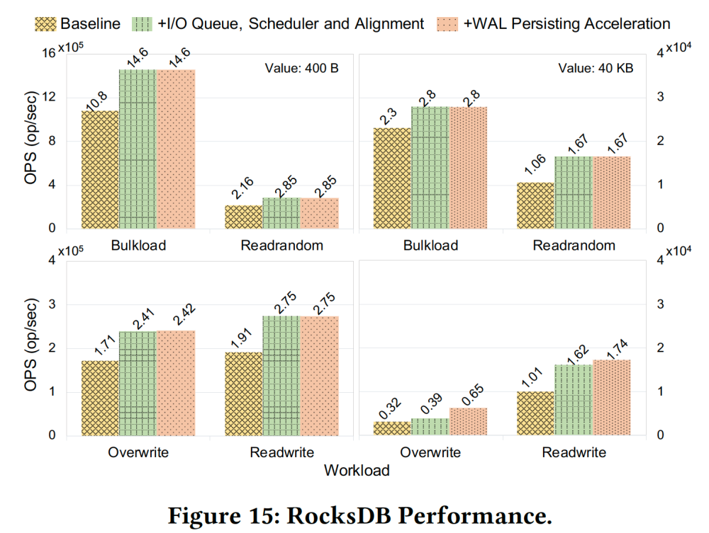 我们还将设计框架及部分优化策略拓展到基于云存储的 RocksDB 上,以验证其通用性。
