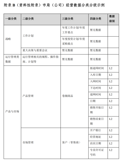 本次数据分类分级在《信息技术 大数据 数据分类指南》(GB/T 38667-2020)基础上,根据工信部《工业和信息化领域数据安全管理办法(试行)》、省局《全省烟草商业系统数据分类分级管理制度》要求,结合本单位的数据特点和业务需求,形成了数据分类分级清单、数据分类分级指南等指导性文件,明确了数据分类分级原则、方法和安全管控措施。