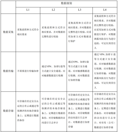 考虑到数据多样性和异构性特点,参考数据分类采用了以线分类法为主,面分类法为辅的混合分类方法,即从基础数据、主题数据、应用数据三个维度进行大类区分,再按照数据产生来源、业务归属等要素进行小类细分;数据分级则在重要、核心、一般数据的基础上,根据数据遭到篡改、破坏、泄露或非法利用后,可能带来的潜在影响的范围和程度进行数据分级。最终形成《数据分类分级指南》,数据共分为4类4级: