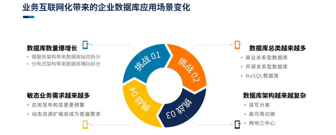 分为四个话题:第一,当前企业数据库发展的现状以及挑战。第二,整个数字化的转型期间,数据库的管理模式的转变。第三,如何更轻松地实现数据库管理体系的建设。第四,我会跟大家分享不同的客户,包括大型金融机构和小型制造企业等,在实际数据库管理体系建设上的实践,以及体系所带来的价值。