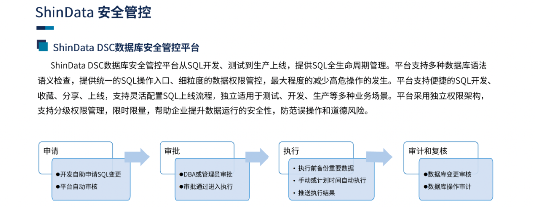 在整个产品体系当中,ShinData DSC 数据库安全管控平台