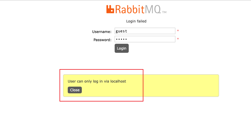 rabbitmq的默认账户和密码是:guest,guest。这里的提示信息就是说,guest账户只能通过localhost进行访问。
