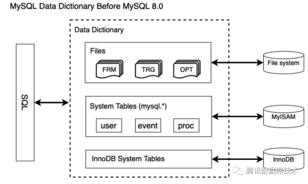 在 8.0 之前的版本中使用了Sever层的Frm文件作为元数据保存的方式,这样做可以让多个存储引擎都使用统一的定义规范。但是也带来了一些问题,InnoDB引擎本身也做了表定义的存储,只给InnoDB引擎使用。那么Frm物理文件的操作和 InnoDB事务性表定义的更改之间如果发生Crash,就会造成Server层的元数据和InnoDB的数据不一致。