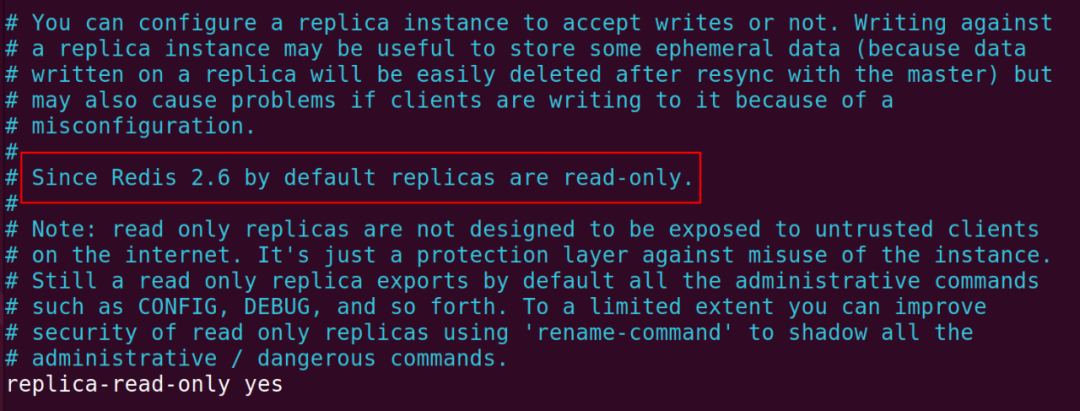 参数可以配置slave是否启动只读模式,其默认参数是yes,即slave节点默认开启只读模式。