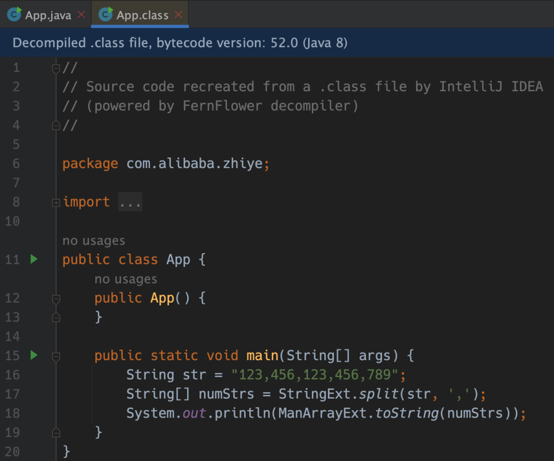 package com.alibaba.zhiye.extensions.java.lang.String;import manifold.ext.rt.api.Extension;import manifold.ext.rt.api.This;import org.apache.commons.lang3.StringUtils;/*** String 的扩展方法*/@Extensionpublic final class StringExt {public static String[] split(@This String str, char separator) {return StringUtils.split(str, separator);}}