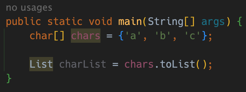 List<String> list = List.of("a", "b", "c");Set<String> set = Set.of("a", "b", "c");Map<String, Integer> map = Map.of("a", 1, "b", 2, "c", 3);