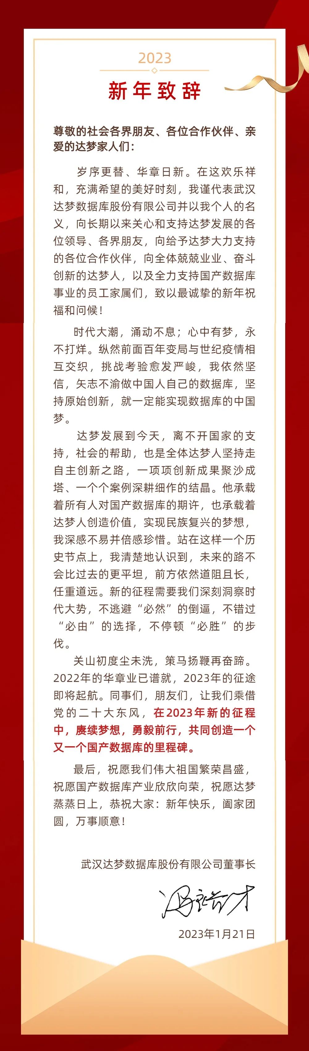 达梦数据董事长新年致辞丨赓续梦想,勇毅前行!