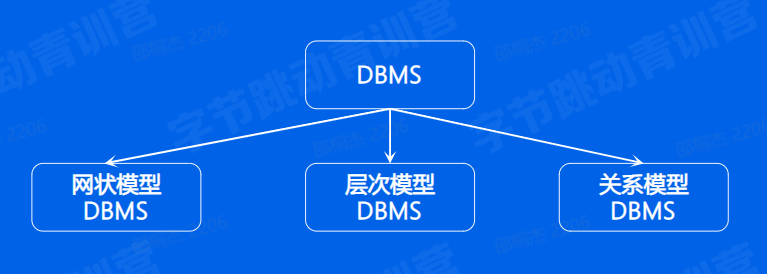 DBMS:按照某种数据模型来组织、存储和管理数据的仓库。所以通常按照数据模型的特点将传统数据库系统分成网状数据库、层次数据库和关系数据库三类。