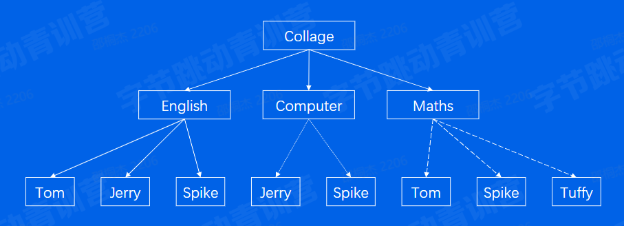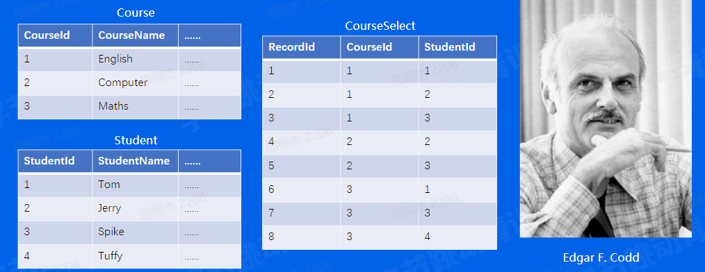 关系型数据库可用于表示实体之间的多对多的关系,只是此时要借助第三个关系—表,来实现多对多的关系;
