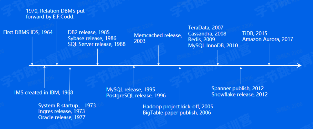 源远流长: RDBMS从1970年第一篇论文发 布至今已有50余年,衍生出Oracle, DB2,MySQL,SQL Sever, Aurora等一系列知名数据库产品。