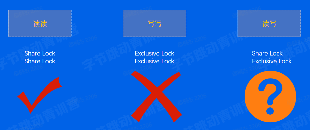 如果多个并发事务访问同一行记录,就需要锁机制来保证了。读写是否冲突?读写互不阻塞,MVCC机制。