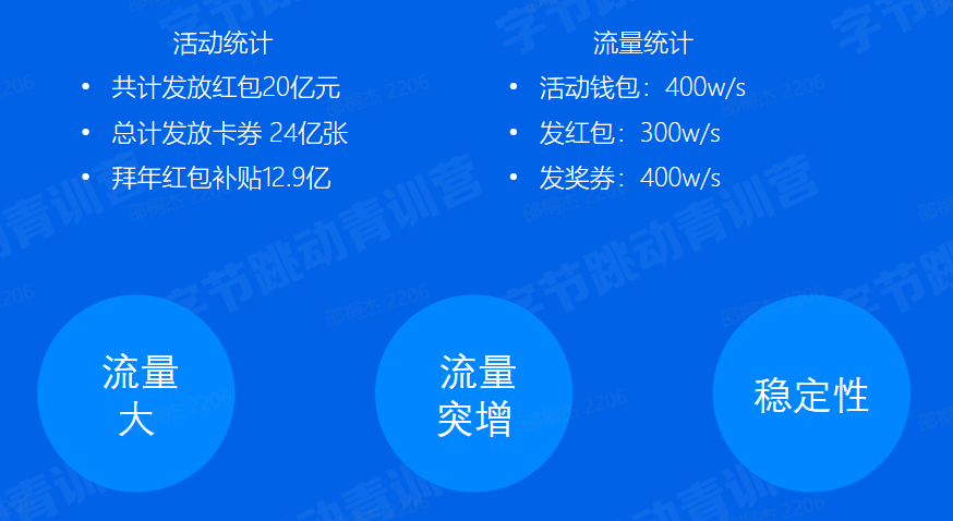 Case 6:假设除夕晚上大家正在愉快的从抖音身上"薅羊毛”,这时候服务器挂了,程序员花了一个小时,头发都掉光了,终于修好了。这时候发现李谷一老师《难忘今宵》都唱完了。“抖音宕机"秒上热搜...------------高可靠、高可用High Reliability/Availability