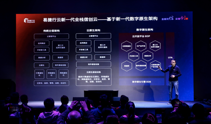 易捷行云EasyStack联合创始人兼CTO刘国辉表示:新一代全栈信创云基于数字原生架构,做到逻辑一体,物理分离。