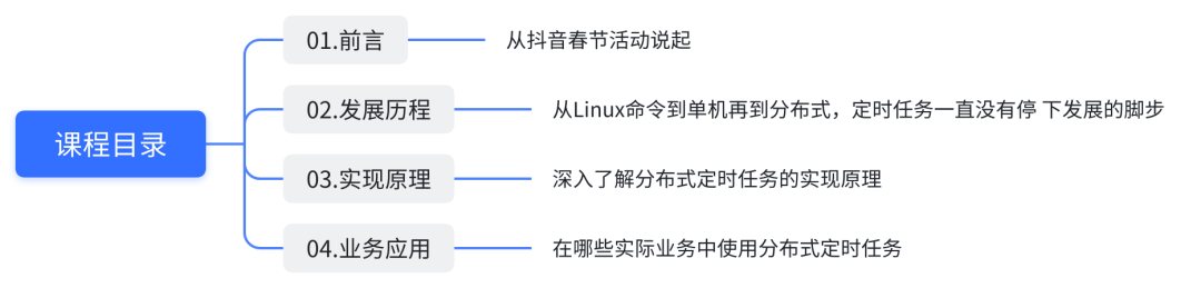 在知识深度方面的话。所以这门课程会深入去了解分布式定时任务的一系列的实现原理。然后在这个过程当中,我们会深入地讲述不同的公司在同样一个技术问题上中的技术选型,通过去了解这种不同的实现方案来拓展知识的一个深度。