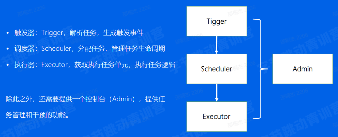 控制台Admin、触发器Trigger、调度器Scheduler、 执行器Executor