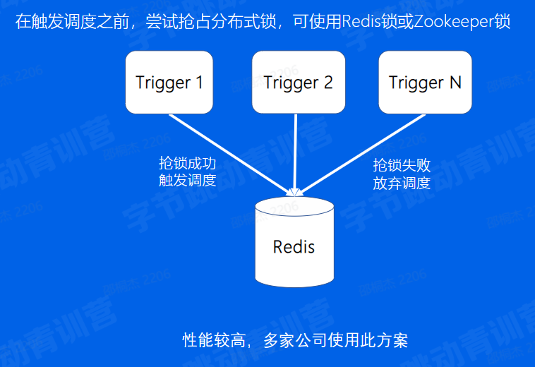 在触发调度之前,更新数据库中Joblnstance的状态, 成功抢锁的才会触发调度