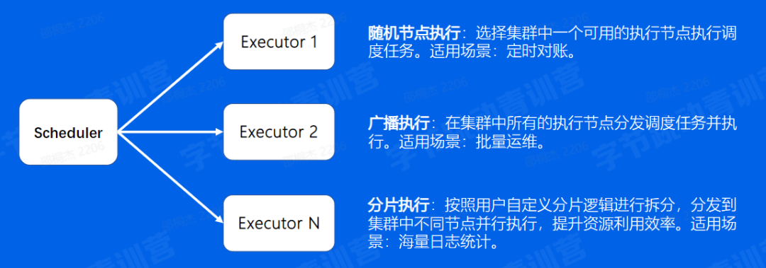 单机任务:随机触发一台机器执行任务, 适用于计算量小、并发度低的任务