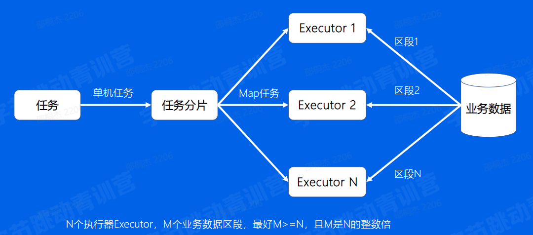 Map任务:一个任务可以分出多个子任务,每个子任务负责-部分的计算。适用于计算量大,单机无法满足要求的任务