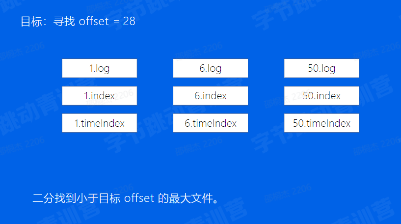 介绍文件:文件名是文件中第一条消息的offset 然后,第一步,通过二分找到小于目标文件的最大文件