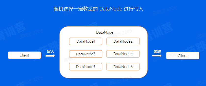 首先客户端写入前会选择一定数量的DataNode,这个数量是副本数,然后将一个文件写入到这三个节点上,切换到下一个segment之后,又会重新选择三个节点进行写入。