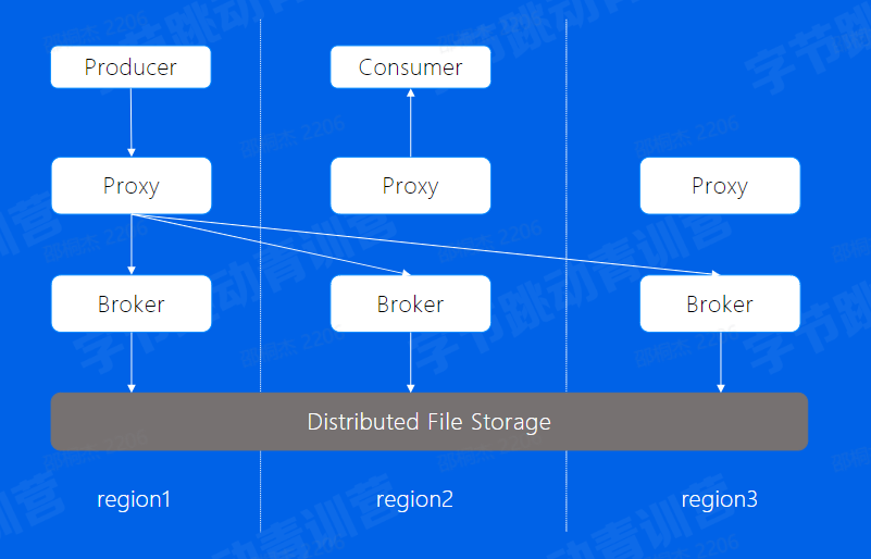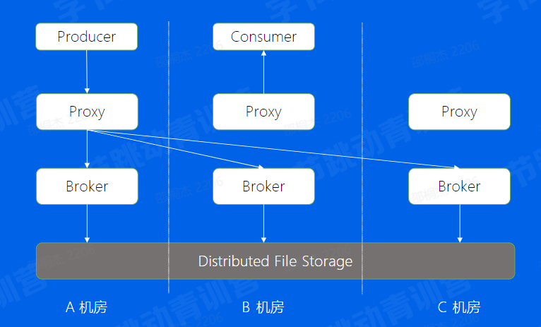 那我们来看看BMQ的多机房部署是怎么做的Proxy -> Broker -> Meta -> HDFS