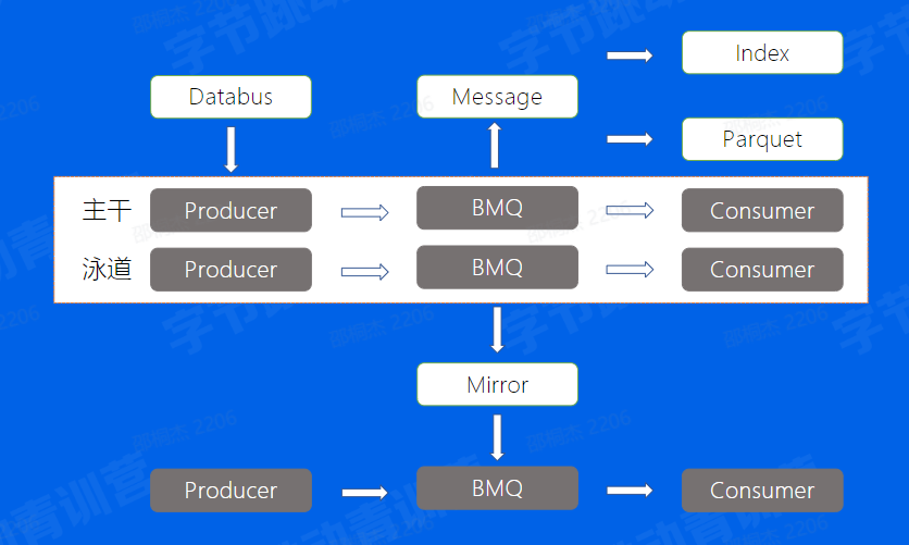BMQ的架构模型(解决Kafka存在的问题) BMQ读写流程(Failover 机制,写入状态机) BMQ高级特性(泳道、Databus、 Mirror、 Index、 Parquet)