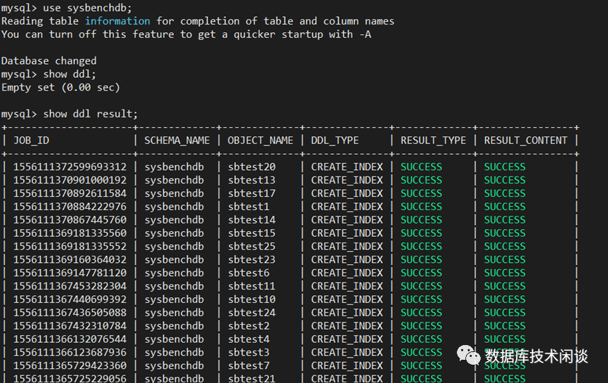 PolarDB-X 比较友好的地方是提供了命令取查看 DDL 的状态和结果。