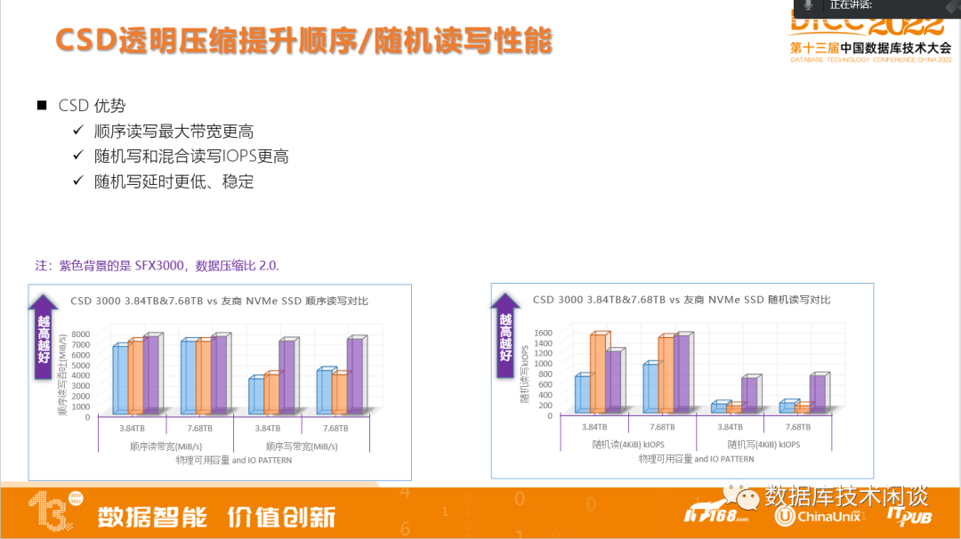 如果数据库本身有一些空间换性能的设计,那么可以跟CSD完美结合,实现性能和空间的双赢。