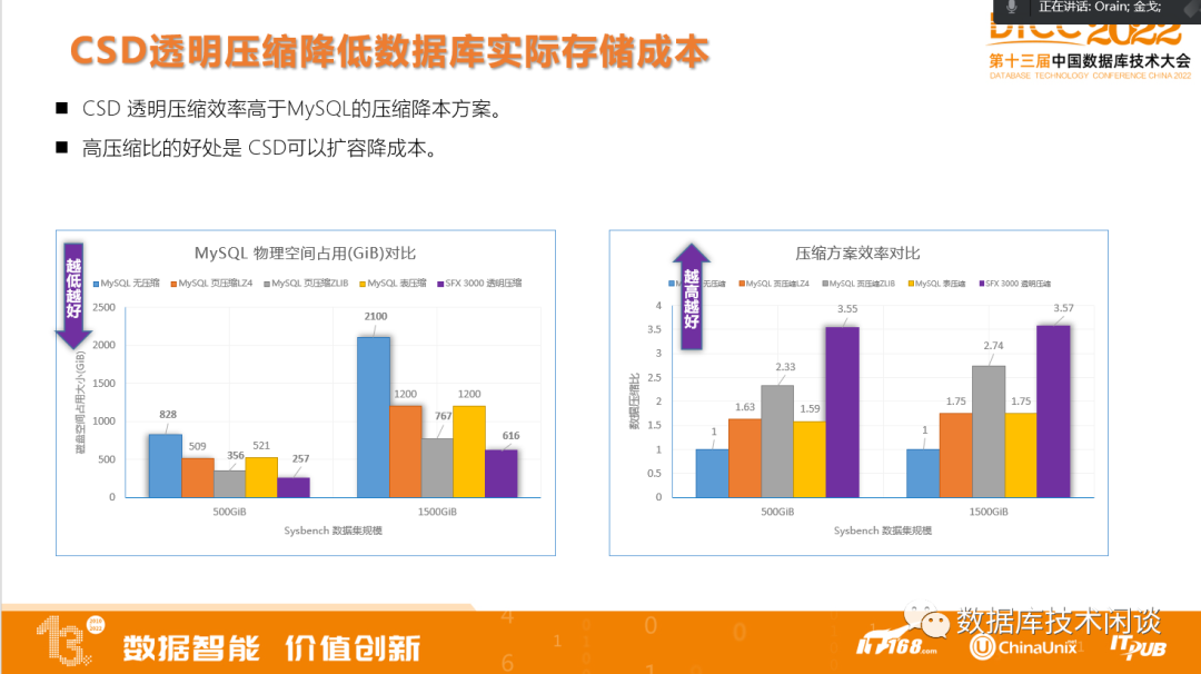 所以跟数据库压缩方案相比,CSD透明压缩的好处就很明显: