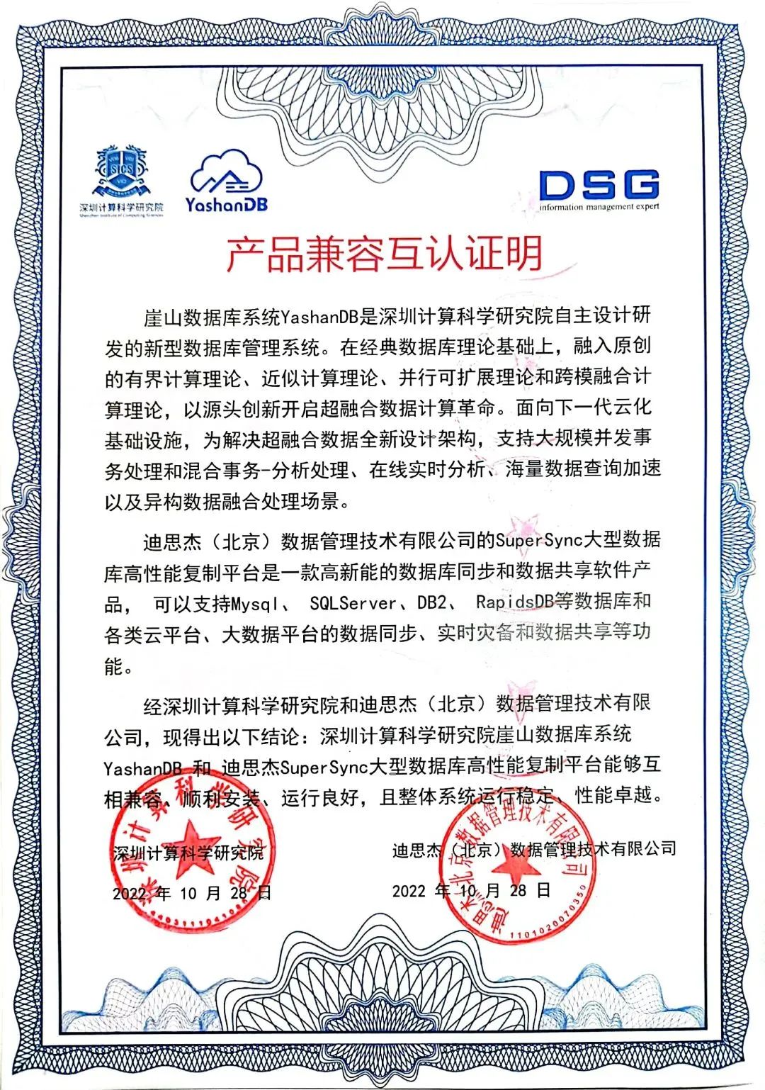 崖山数据库系统YashanDB与SuperSync大型数据库高性能复制平台能够互相兼容、顺利安装、运行良好,且整体系统运行稳定、性能卓越。