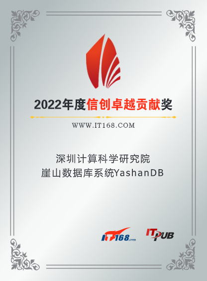 近日,业界知名IT垂直门户媒体IT168发布了“2022年度技术卓越奖”奖项,崖山数据库系统YashanDB凭借在信创领域的积累,斩获“2022年度信创卓越贡献奖”,充分彰显出YashanDB在信创产业贡献方面的示范引领作用。