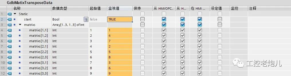 在循环OB中调用FB-“MatrixTranspose”。如下图:
