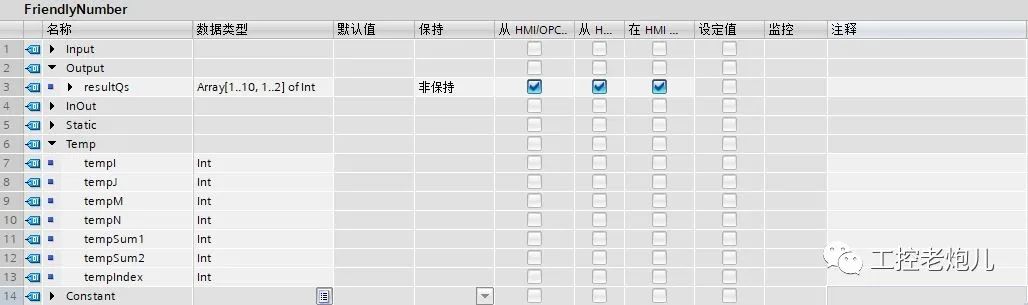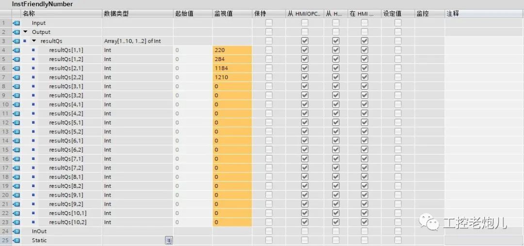 在循环OB中调用FB- “FriendlyNumber”,调用时会自动创建背景数据块,命名为“InstFriendlyNumber”,该背景数据块可以用来监视和修改数据。